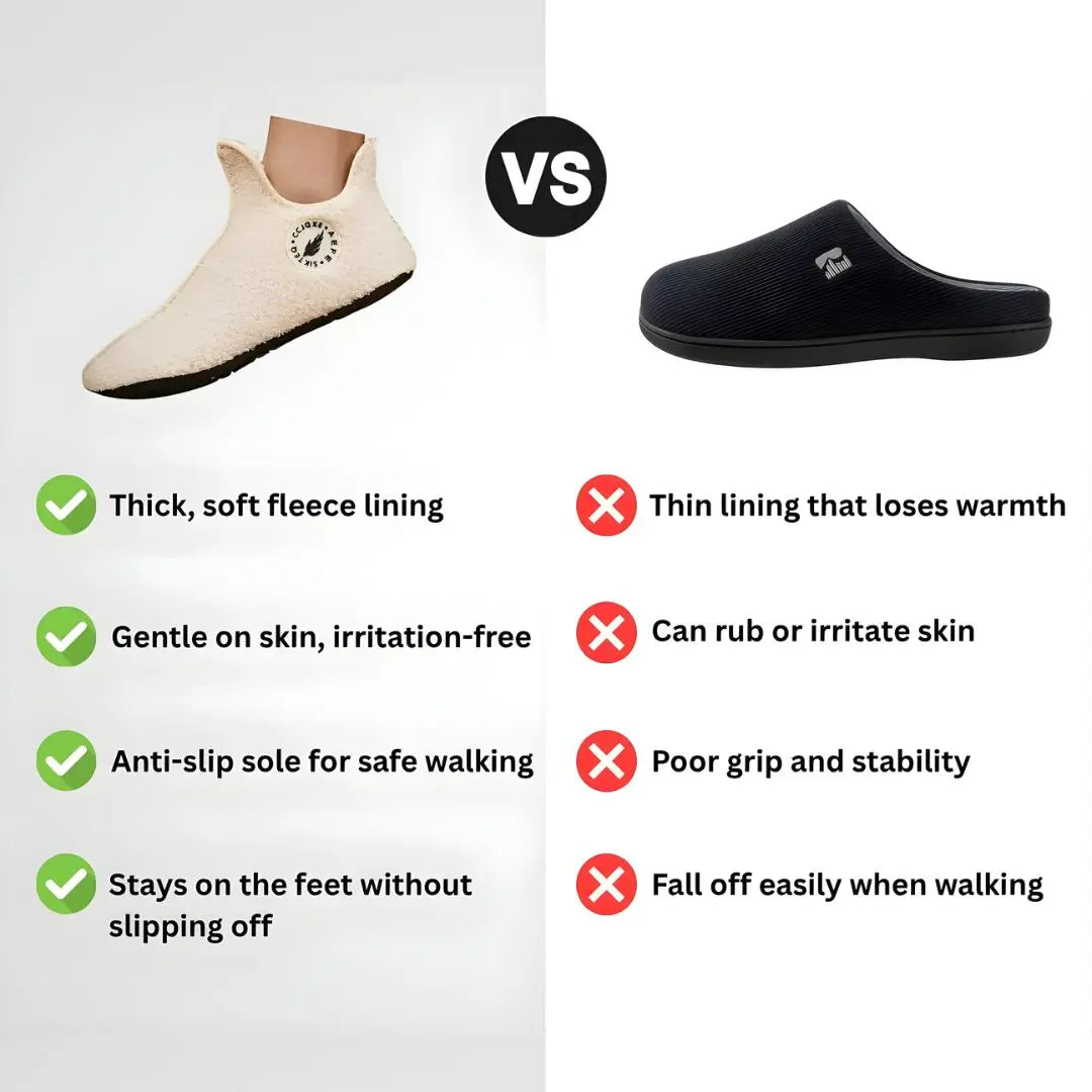 Explore the unique benefits of our fuzzy slippers and see why they are the superior choice for home comfort and foot support compared to standard slippers.